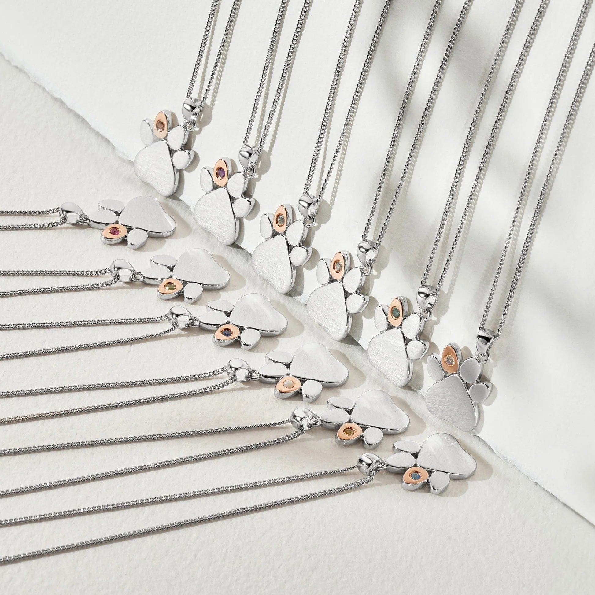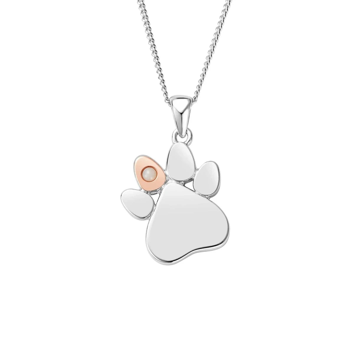 Clogau Sterling Silver Paw Prints On My Heart Necklace October Opal Birthstone