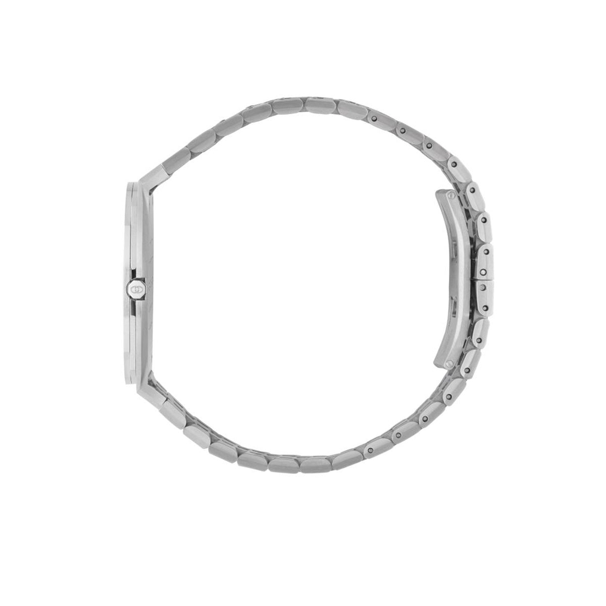 The GUCCI 25H's streamlined silhouette was inspired by the sleek forms of contemporary architecture. The watch is presented with a thin multi-layer case and five-link steel bracelet, while the design is completed by a silver brass dial and Interlocking G motif.