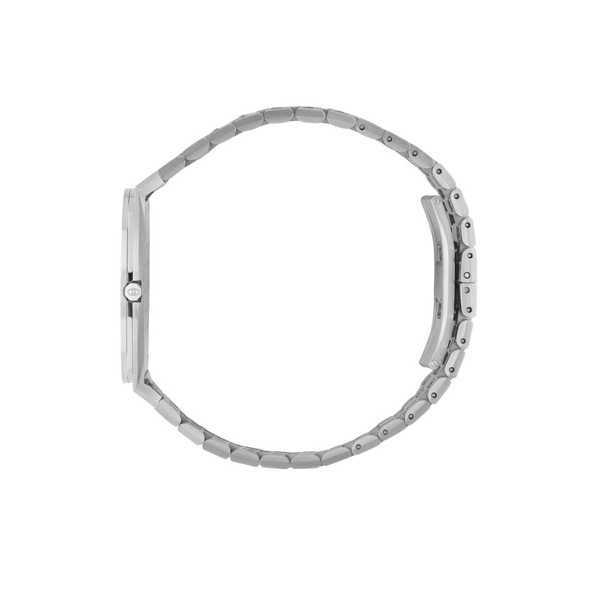 The GUCCI 25H's streamlined silhouette was inspired by the sleek forms of contemporary architecture. The watch is presented with a thin multi-layer case and five-link steel bracelet while the design is completed by the House's monogram logo.