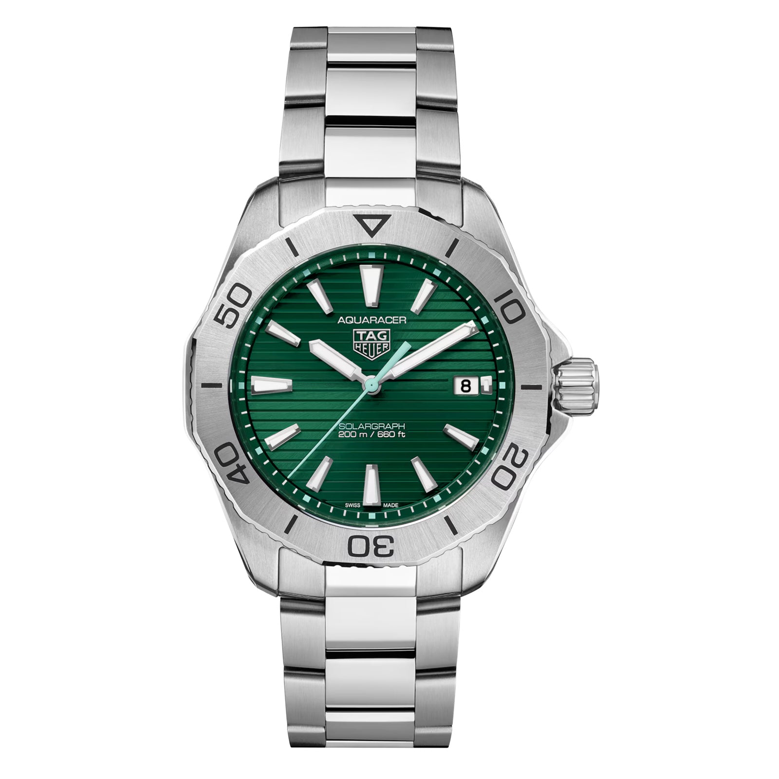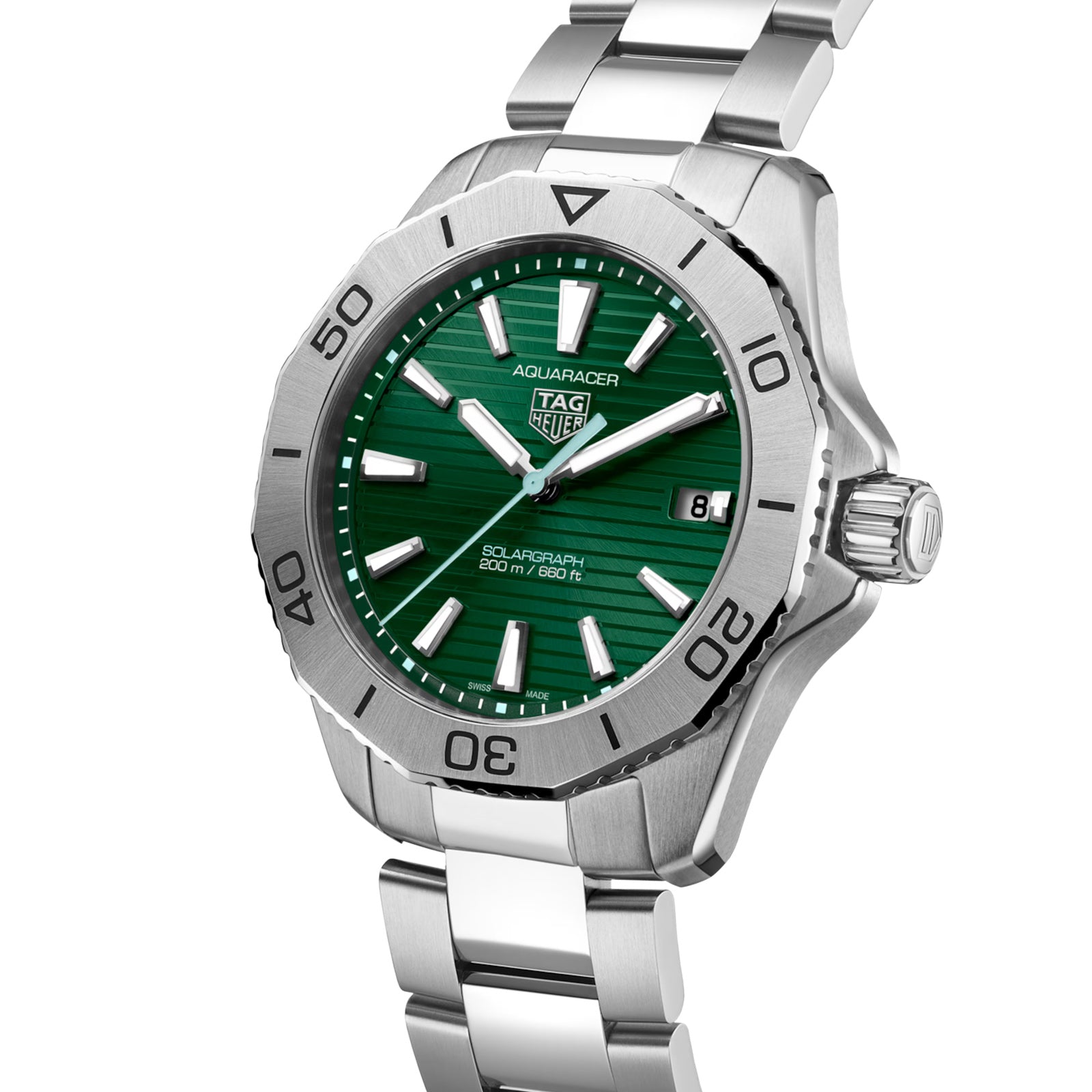 Inspired by the lush green hues of the forest, the 40mm TAG Heuer Aquaracer seamlessly combines nature’s beauty with cutting-edge innovation. Powered by the Calibre TH50-00 movement featuring pioneering Solargraph technology, this watch embodies durability, sustainability, and everyday practicality.