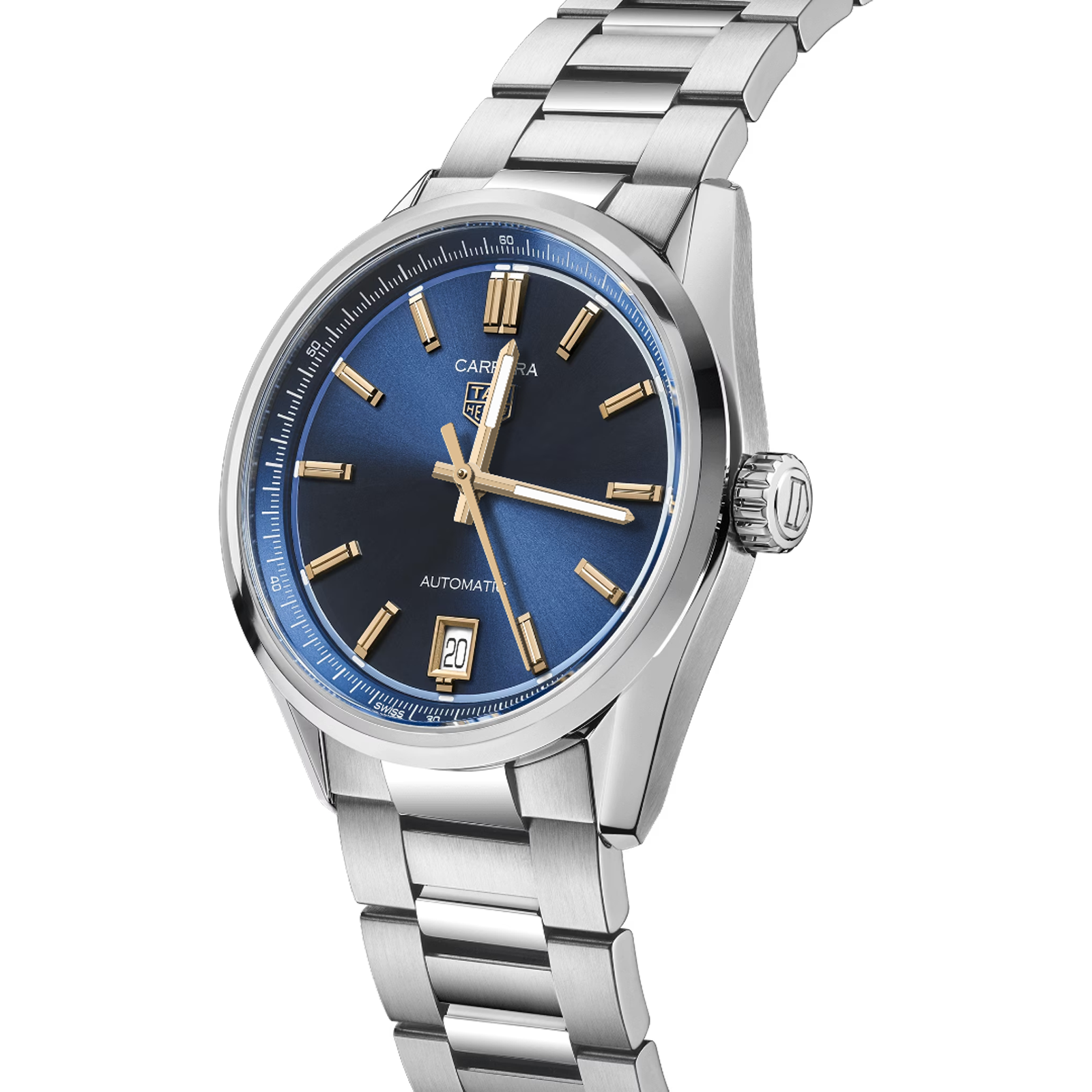 With its striking deep-blue sunray brushed dial and contrasting 18K 5N rose gold-plated applied hands and indexes, this TAG Heuer Carrera proudly displays its iconic allure. Equipped with the Calibre 7 movement and resolutely driven to surpass.