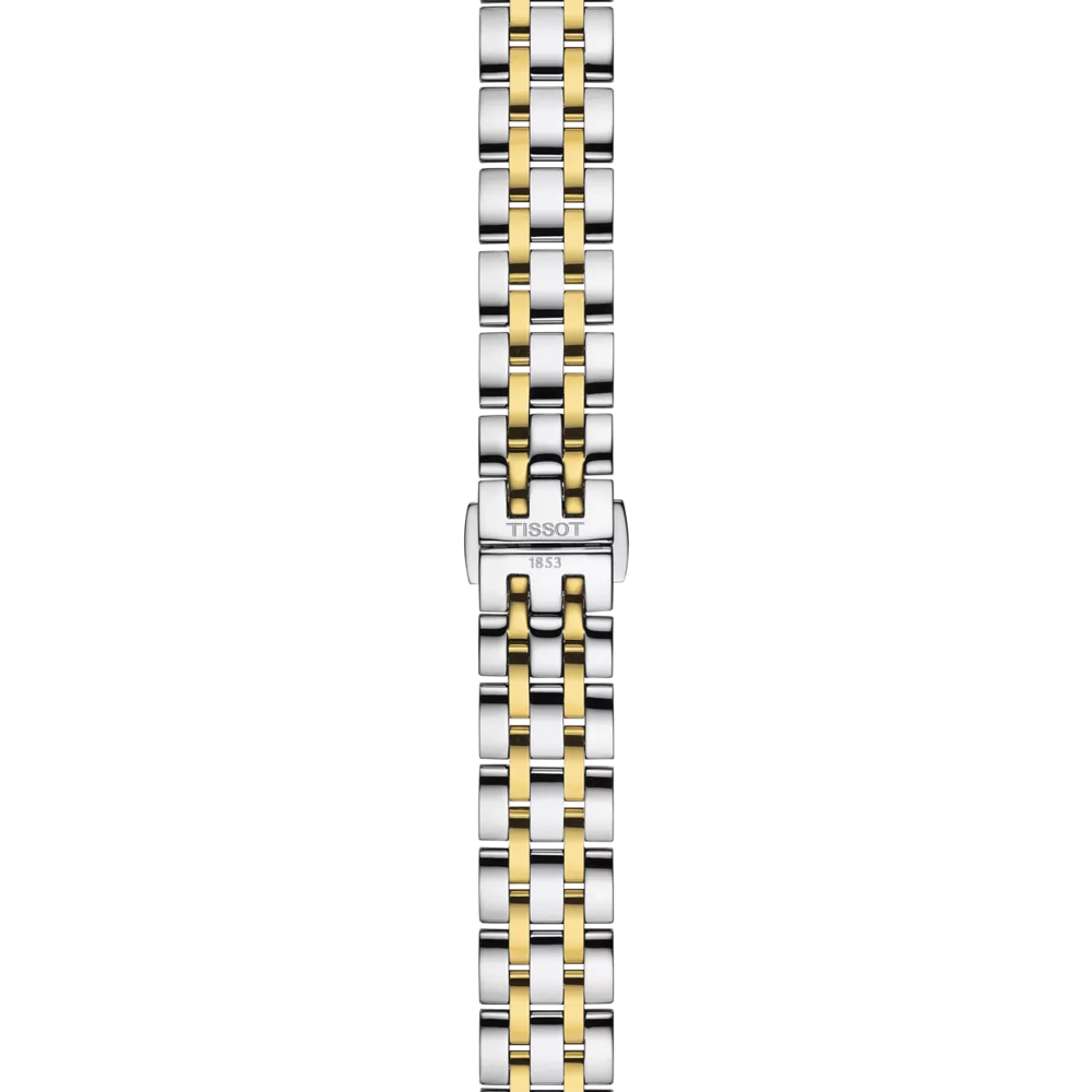 From Tissot's T-Classic collection, a sophisticated design crafted with a hard wearing stainless steel and yellow gold PVD case and bracelet featuring an ivory dial along with gold coloured hands and black roman numerals which are protected by a scratch resistant Sapphire Crystal glass. Additionally this model is powered by a Swiss quartz movement, features an easy to read date display and is 50 metres water resistant.